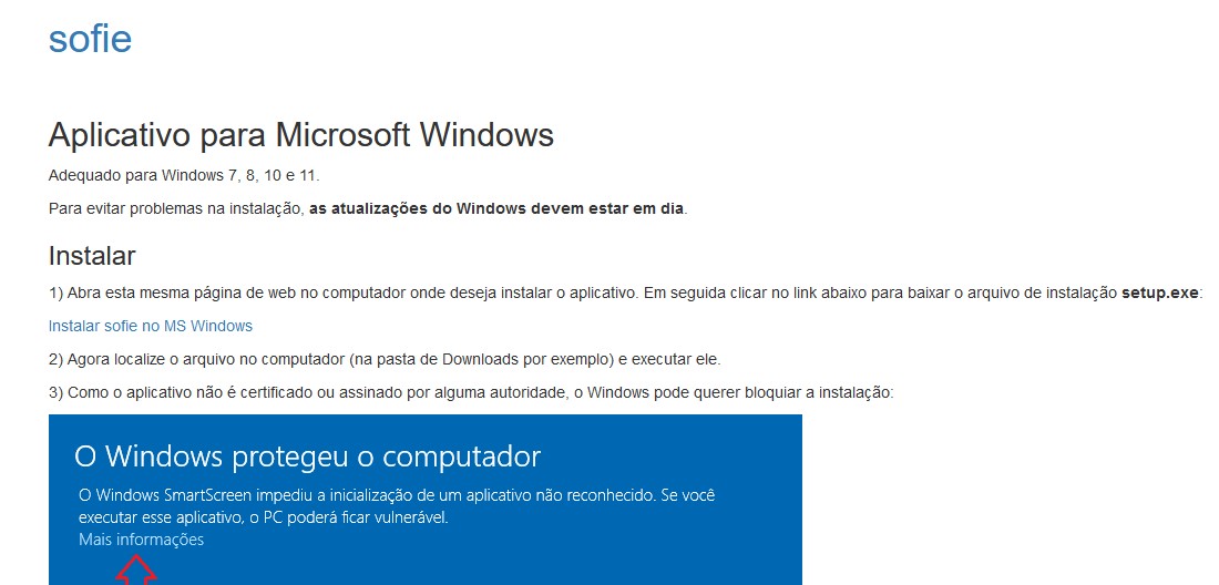 Navegue para o site sofie.net.br no computador onde deseja instalar o aplicativo.