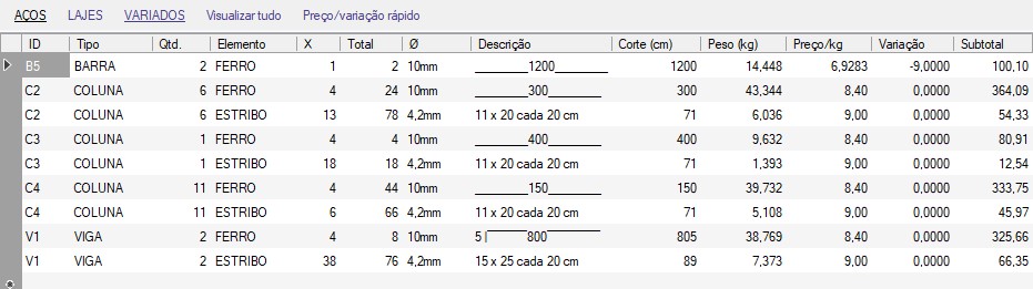 Com a console de vendas de Aços você pode lançar itens simples como vergalhões (barras) ou combinações complexas de ferros e aços armados (ferragens), corte-e-dobra, treliças e até produtos de serralheria.