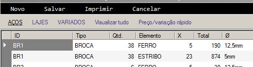 Ao clicar em uma dos outros consoles (nesse caso, Lajes ou Variados), o interface vai mudar de acordo. Além desses consoles, há mais duas opções no menu que podem ser selecionados: